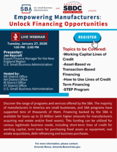 Don’t miss this opportunity to explore SBA programs tailored to small business manufacturers.